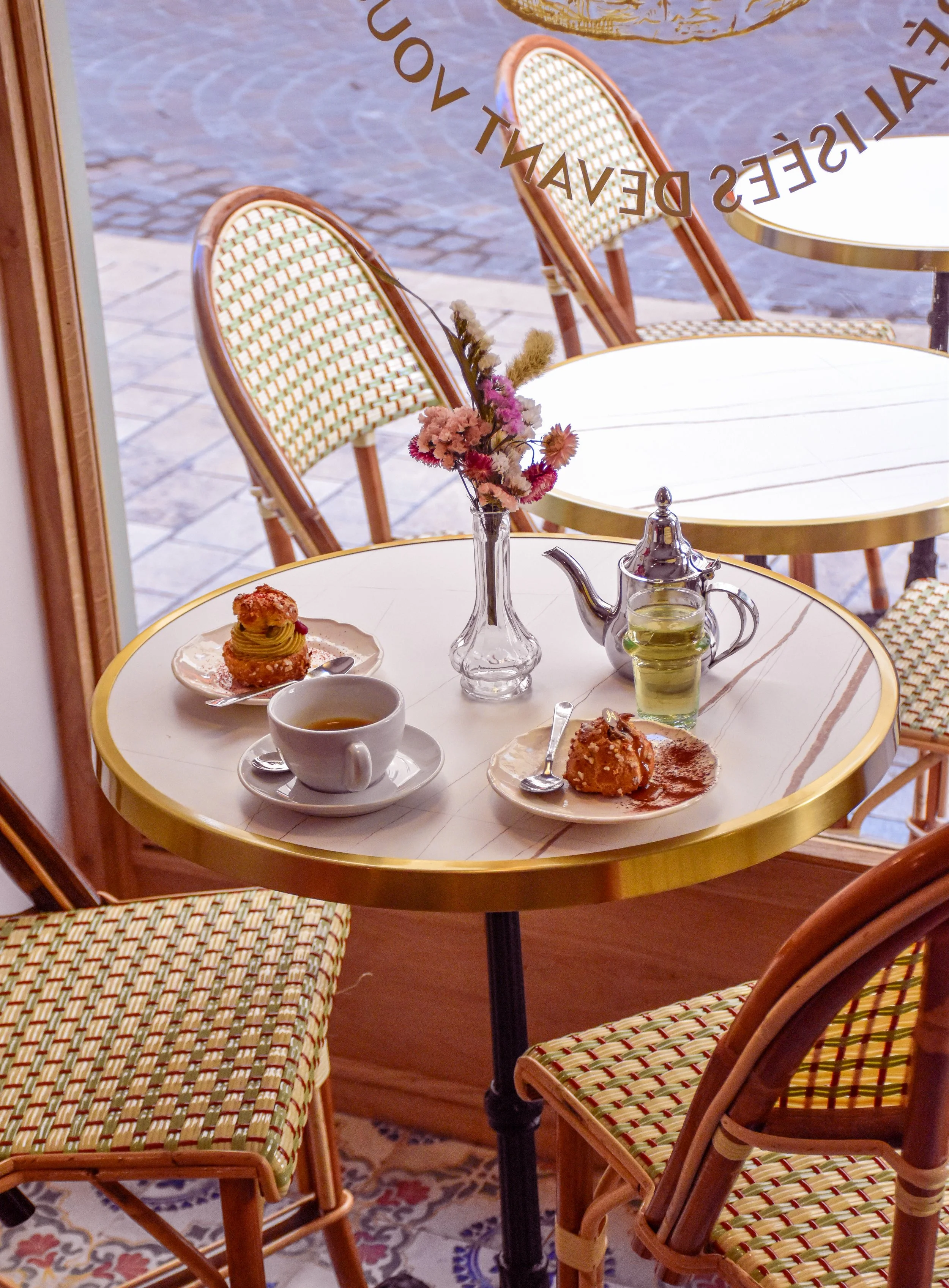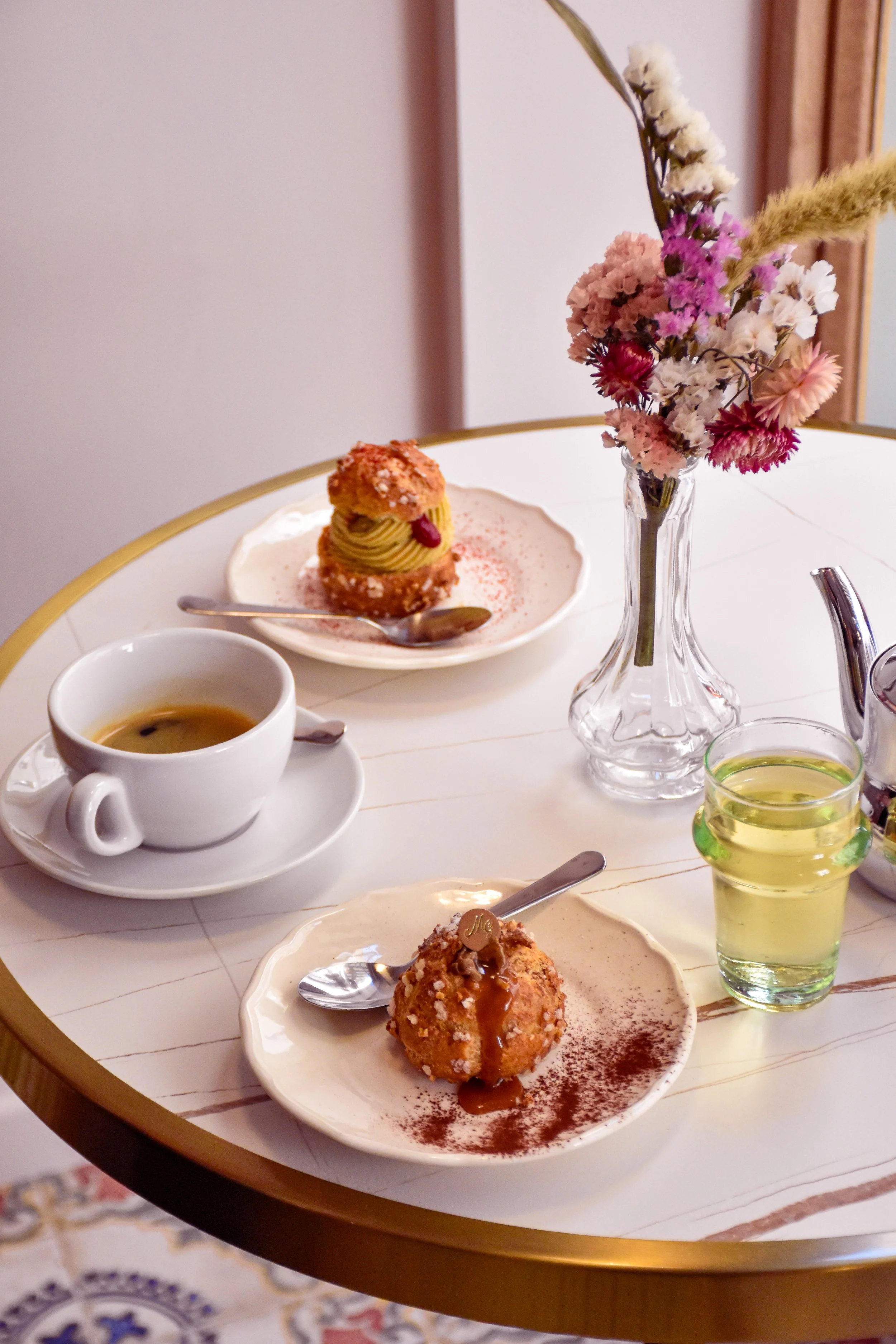 L’après-midi, rejoignez-nous pour savourer nos desserts faits maison, notamment nos choux à la crème et nos profiteroles préparés en direct par notre chef pâtissier.