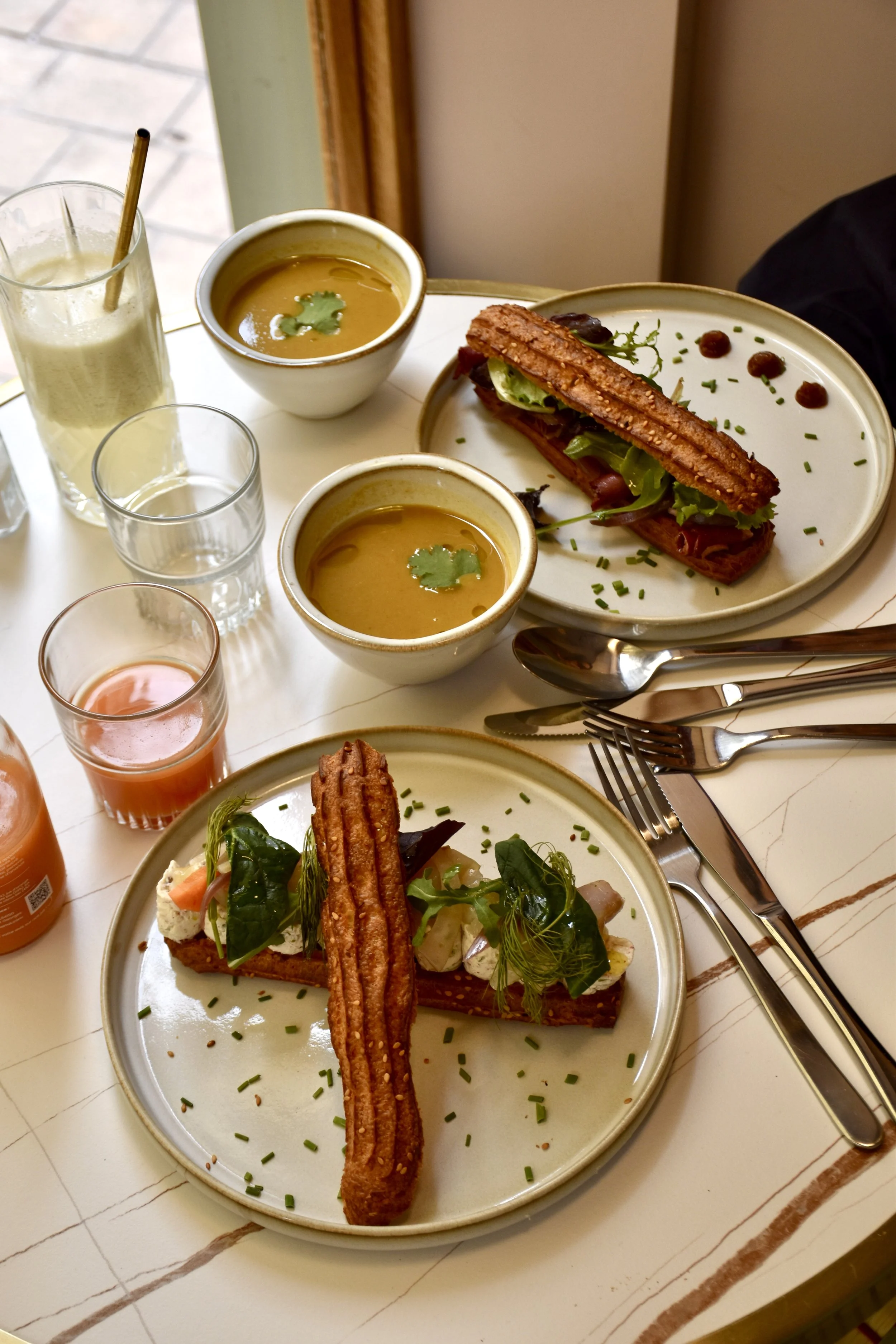 Tous les midis, Fabien et son équipe vous proposent une formule entrée / plat / dessert qui varie chaque mois en fonction des saisons, des inspirations et des envies. Des éclairs bistronomiques pour tous les goûts, à la viande, au poisson et végétarien. Le chef a su apporter un twist innovant aux éclairs, en les transformant en plats complets. Chaque plat est accompagné d’une salade fraîcheur mesclun ou d’une soupe fraîche ou chaude selon les saisons.